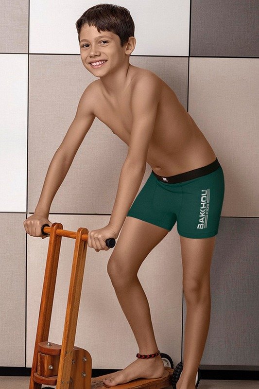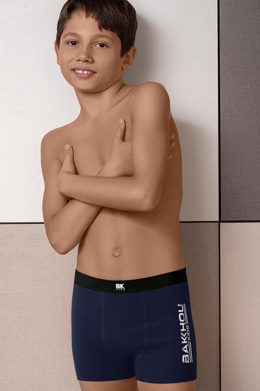BOXER DE ALGODÓN Y LYCRA LISO CON ESTAMPA LOCALIZADA BAKHOU KIDS, ELÁSTICO LISO NEGRO.